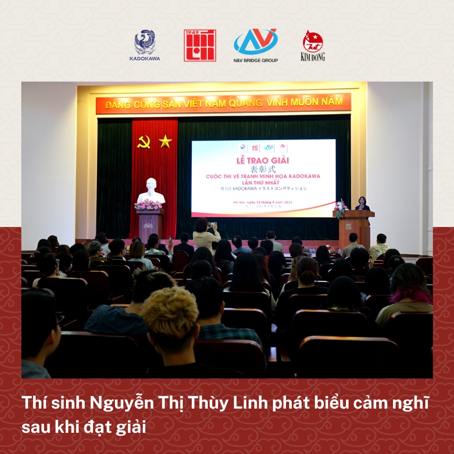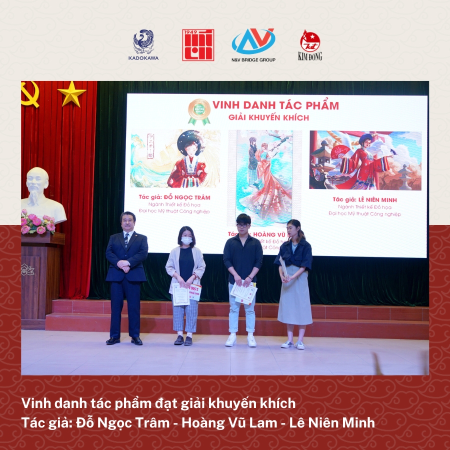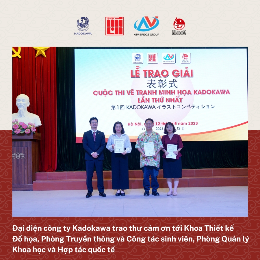 At 09:30 on May 12, 2023, the award ceremony for the first Kadokawa Illustration Contest was officially held at the large hall on the 1st floor of the University of Industrial Fine Arts. The contest is part of a series of cooperation signing activities on July 27, 2022 between the University of Industrial Fine Arts, Kadokawa Joint Stock Company (Japan) and N&V Bridge Co., Ltd.
