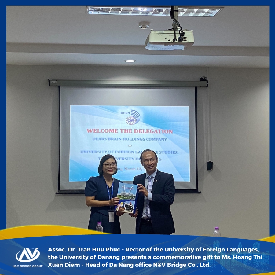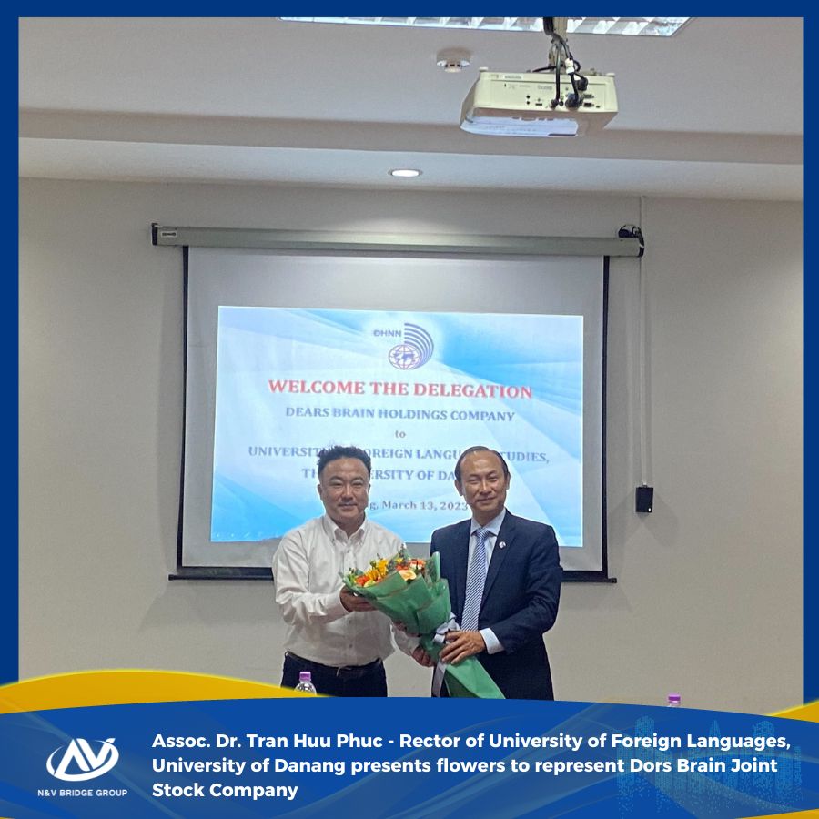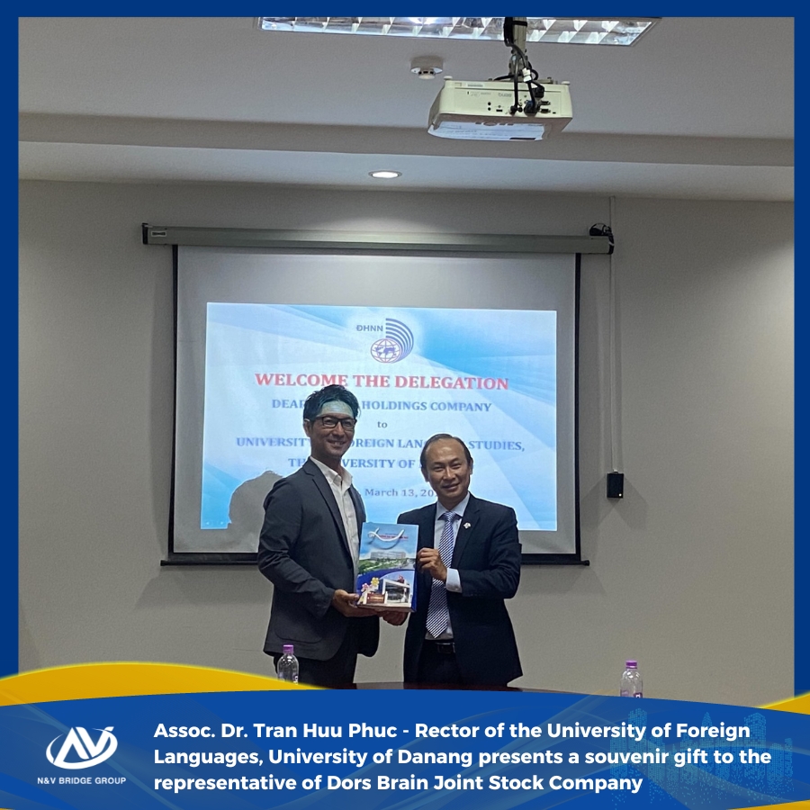 On March 13, 2023, the Delegation of Dors Brain Group and the N&V Bridge Group delegation visited and exchanged work with the University of Foreign Languages, the University of Danang at 141 Luong Nhu Hoc, Khue Trung Ward, Cam Le District, Da Nang City – the main campus of the school.