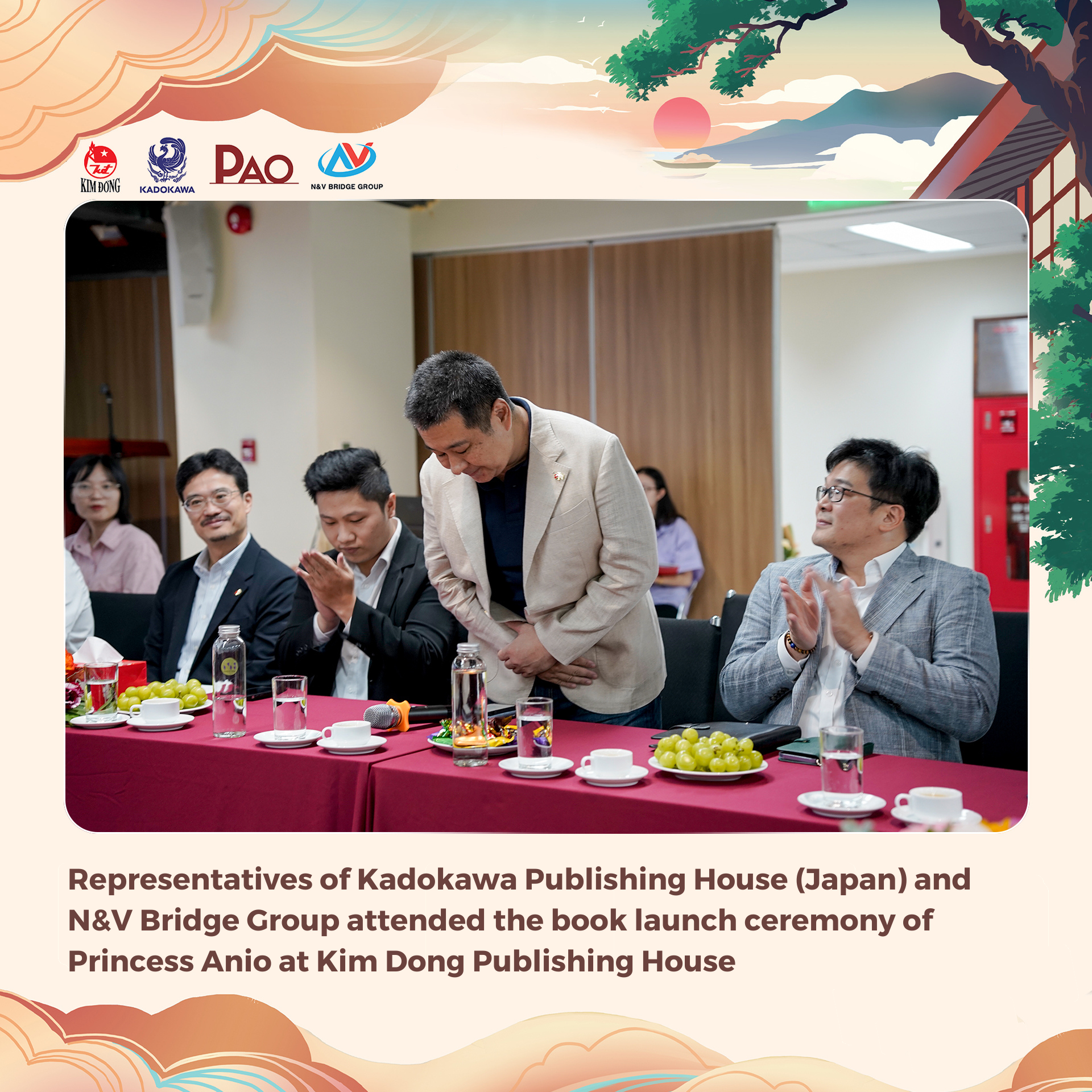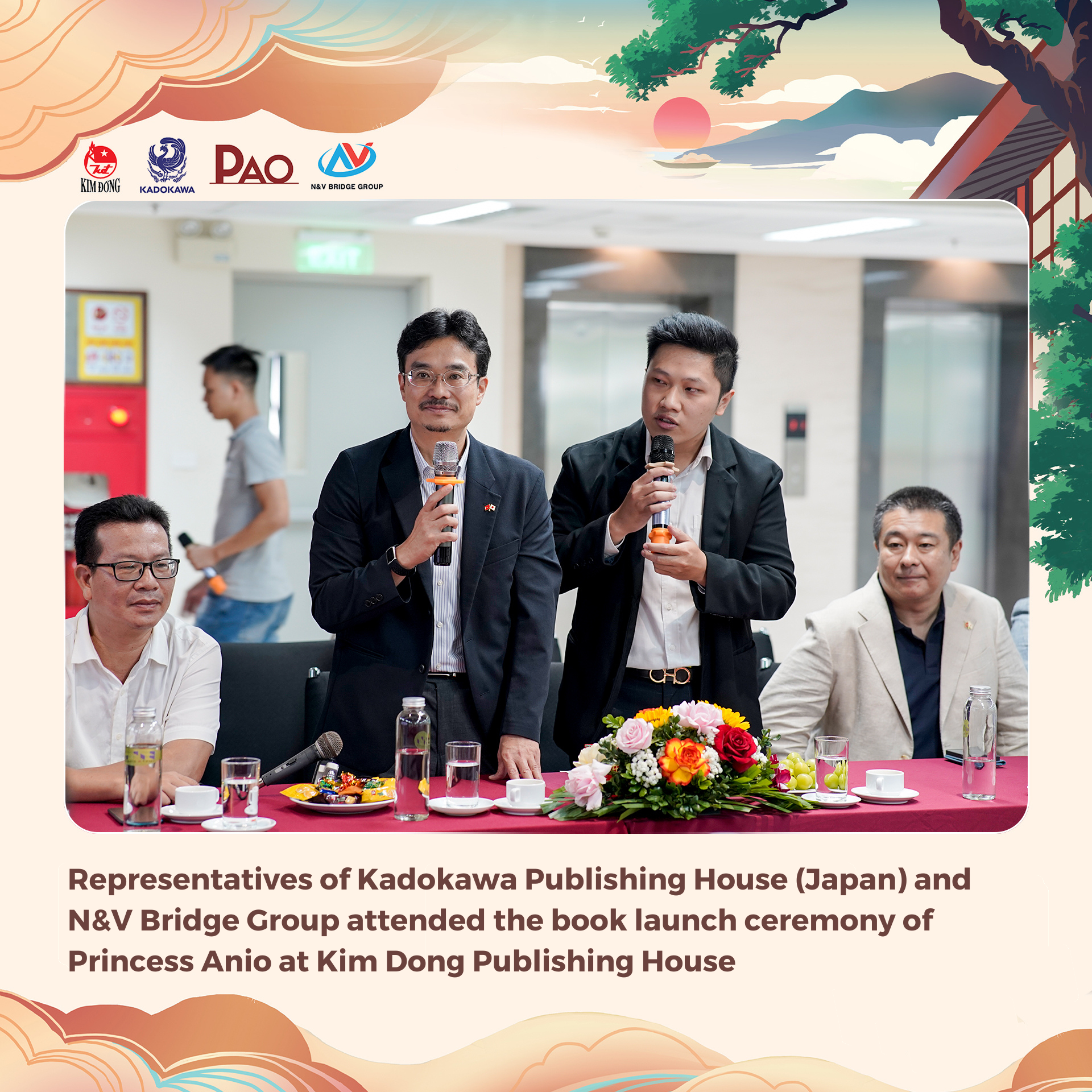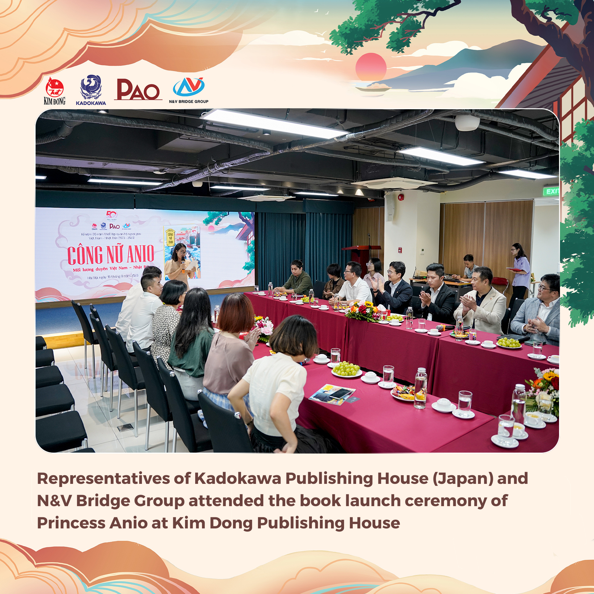 At 10:00 am on September 16, 2023, representatives of Kadokawa Publishing House (Japan) and N&V Bridge Group attended the book launch ceremony of Princess Anio at Kim Dong Publishing House headquarters (55 Quang Trung, Nguyen Du, Hai Ba Trung, Hanoi). This is one of the published projects celebrating the 50th anniversary of the establishment of diplomatic relations between Vietnam and Japan (1973 – 2023).