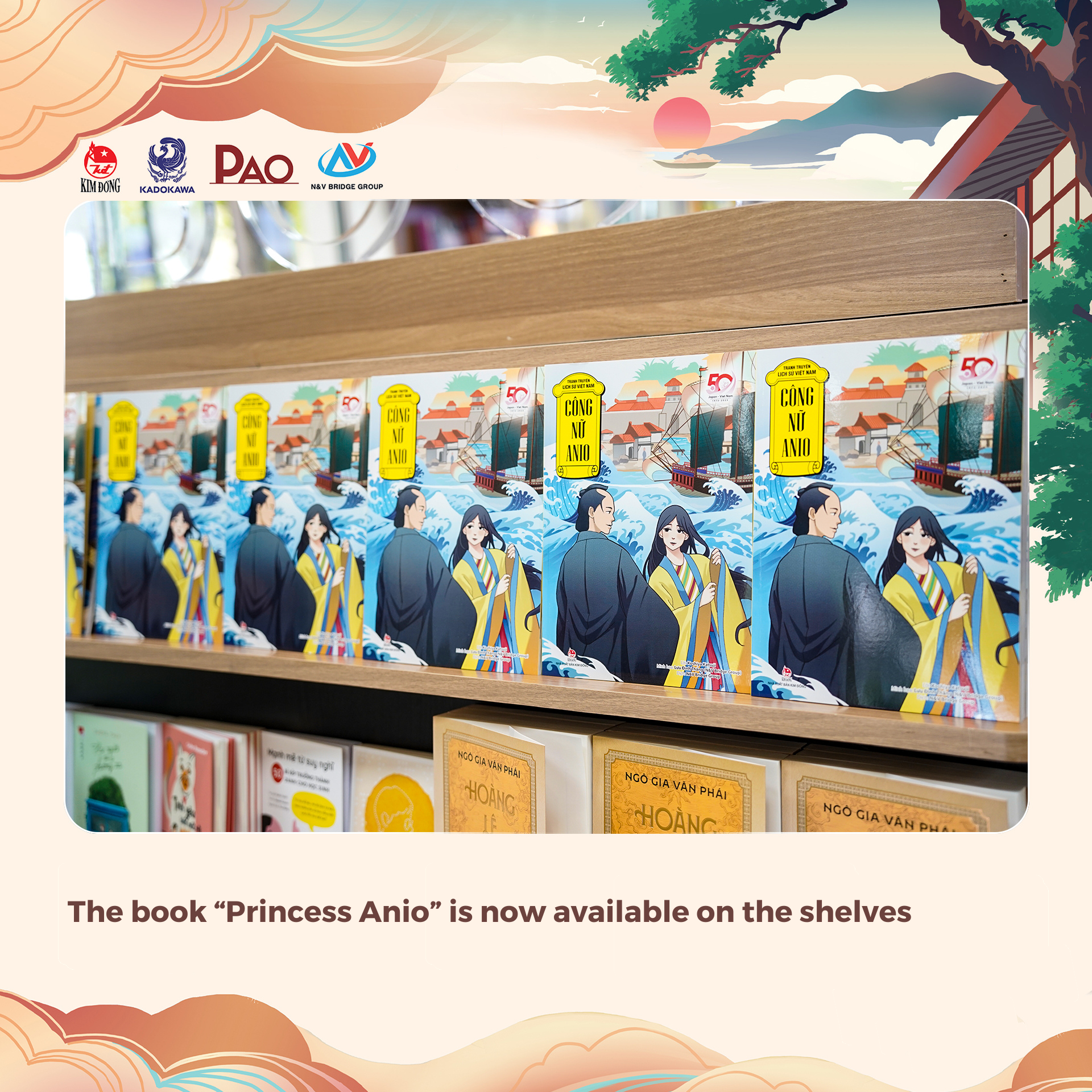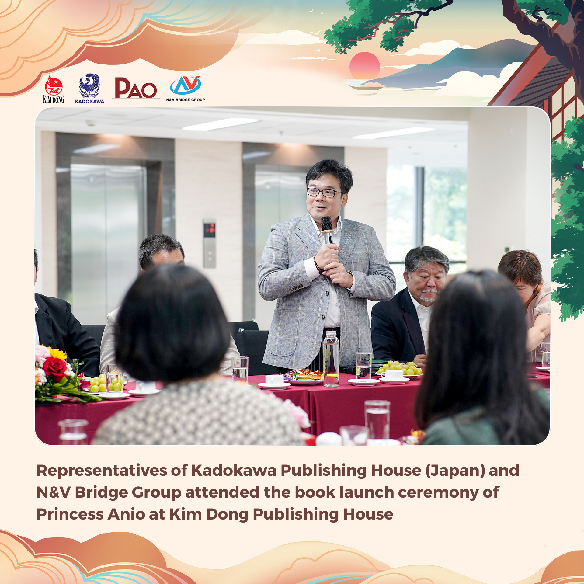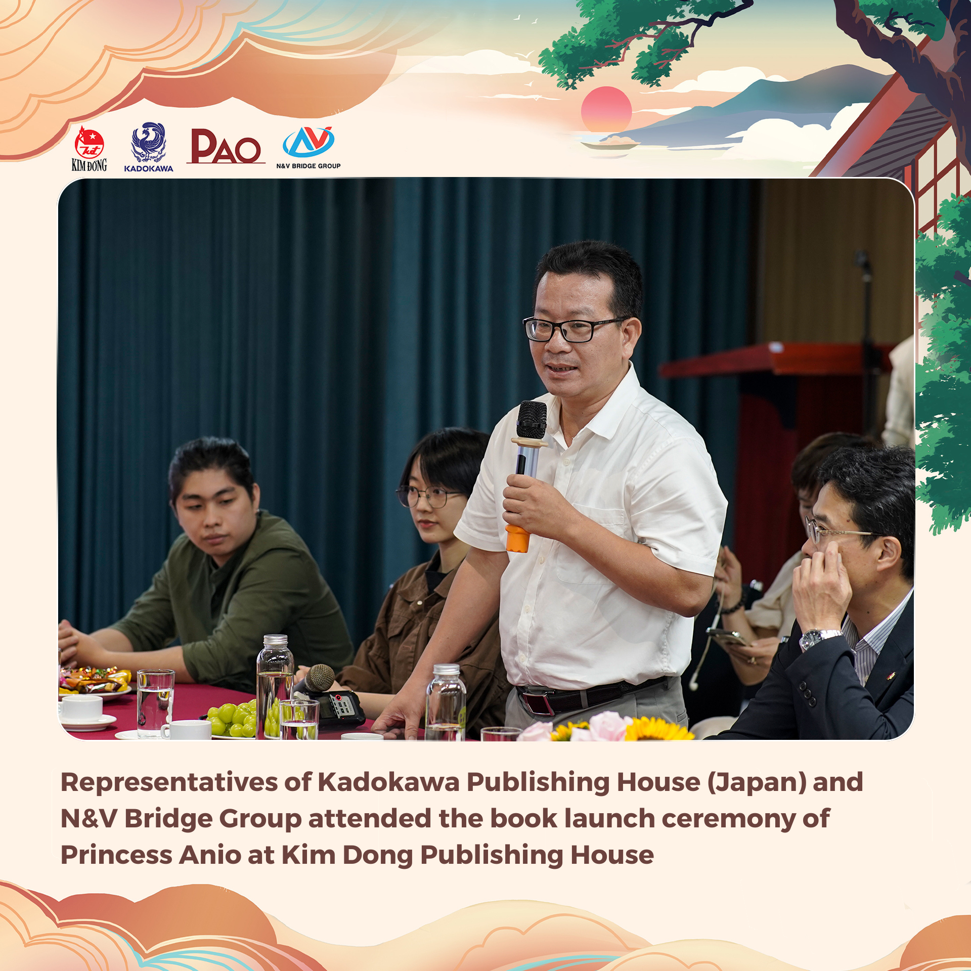 At 10:00 am on September 16, 2023, representatives of Kadokawa Publishing House (Japan) and N&V Bridge Group attended the book launch ceremony of Princess Anio at Kim Dong Publishing House headquarters (55 Quang Trung, Nguyen Du, Hai Ba Trung, Hanoi). This is one of the published projects celebrating the 50th anniversary of the establishment of diplomatic relations between Vietnam and Japan (1973 – 2023).