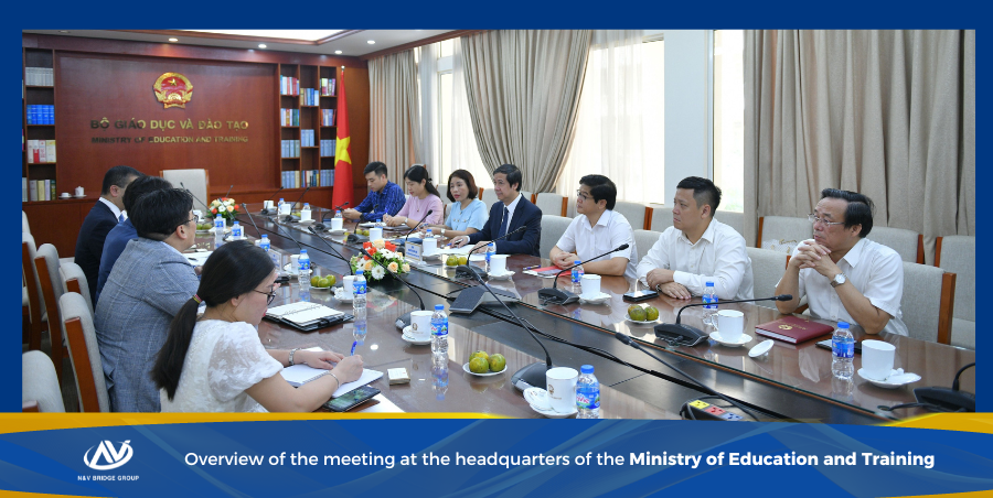 In the morning of July 27, 2023, Mr. Tatani Kiyoshi – Sales Director of Mizuno Group and Mr. Nguyen Vo Huyen Duong – CEO of N&V Bridge Group visited and worked with Minister Nguyen Kim Son at the Ministry of Education and Training.