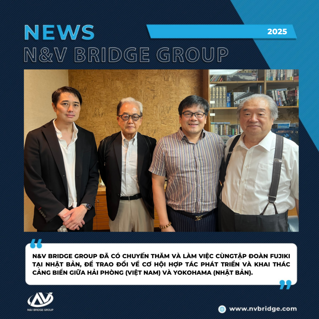 Trong khuôn khổ chuyến công tác tại Nhật Bản, Ông Nguyễn Võ Huyền Dương – Tổng Giám đốc N&V Bridge Group – đã có buổi thăm và làm việc với Ngài Fujiki Kota – Chủ tịch Tập đoàn Fujiki, một trong những tập đoàn logistics và dịch vụ cảng biển hàng đầu Nhật Bản. Cuộc gặp gỡ tập trung trao đổi về các cơ hội hợp tác chiến lược trong việc phát triển và khai thác cảng biển giữa Hải Phòng (Việt Nam) và Yokohama (Nhật Bản).